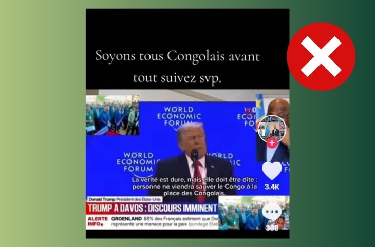🎧 Contexte: cette vidéo de Donald Trump appelant à une mobilisation des Congolais contre l’injustice et la corruption est un deepfake9 février 2026 : Un extrait du discours du président américain Donald Trump à l’édition 2026 du Forum économique mondial de Davos en Suisse est devenu viral en RDC ces dernières semaines. On y voit l’actuel locataire de la Maison Blanche inviter la population congolaise à dénoncer ceux qui les oppriment pour obtenir le soutien de la communauté internationale. […]