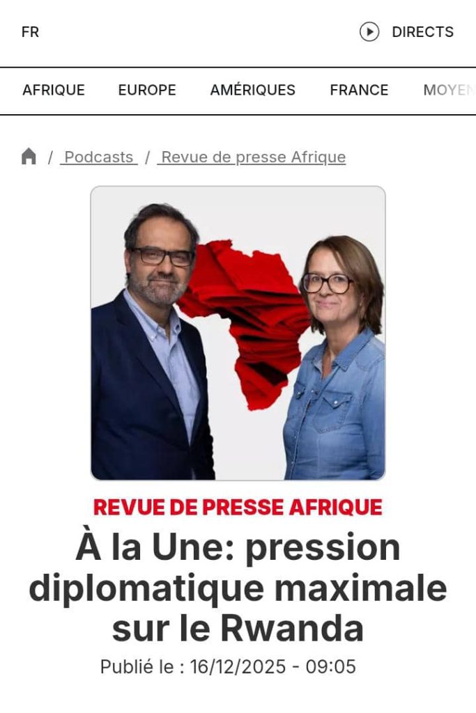 Contacté sur WhatsApp en date du 18 décembre 2025, un journaliste de Radio Okapi ayant requis l’anonymat a indiqué que la voix entendue dans l’audio ne ressemble à celle d’aucun de ses collègues. Une seconde recherche sur Google avec les mots-clés « Dans un langage particulièrement offensif, il qualifie Paul Kagame de criminel de guerre », cette fois-ci sans ciblage d’un site en particulier, a conduit vers un article de Radio France Internationale (RFI) publié le 16 décembre. Il s’agit de la Revue de presse du jour, présentée par les journalistes Frédéric Couteau et Andréane Meslard. Le sujet évoquait la pression diplomatique maximale exercée sur le Rwanda après la prise de la ville d’Uvira par l’Alliance Fleuve Congo/Mouvement du 23 mars (AFC/M23). Si à aucun moment durant les 4 minutes et 21 secondes du podcast il n’est rapporté cette prétendue qualification de Donald Trump contre Paul Kagame, Vunja Uongo a pu caler l’extrait utilisé par ces publications, audible à partir d’une minute et 22 secondes.