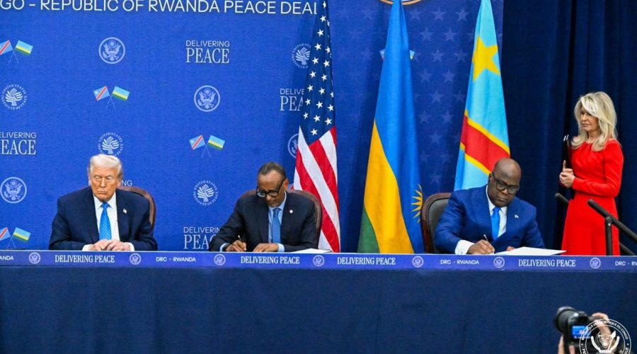 RDC-Rwanda : Donald Trump vante un accord de paix « miracle »5 décembre 2025 : Le président des États-Unis Donald Trump a présidé jeudi 4 décembre à Washington une cérémonie de signature d’un accord de paix avec ses homologues congolais et rwandais, dans un bâtiment renommé en son honneur, parlant d’un « miracle » alors même que d’intenses combats se déroulent dans l’est de la République démocratique du Congo (RDC). « Cela va être […]