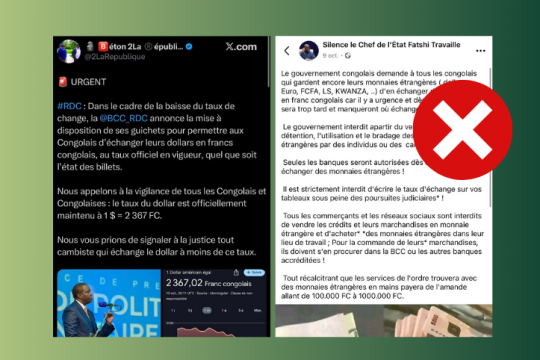 Une fausse citation attribuée à l’opposant Martin Fayulu circule sur les réseaux sociaux, le présentant comme ayant qualifié de « rebelle » tout celui qui prend les armes contre la RDC. Après vérification, il s’avère que ces propos ont été et sortis de leur contexte, et datent d’une intervention de juillet 2025 à l’Université Libre […]